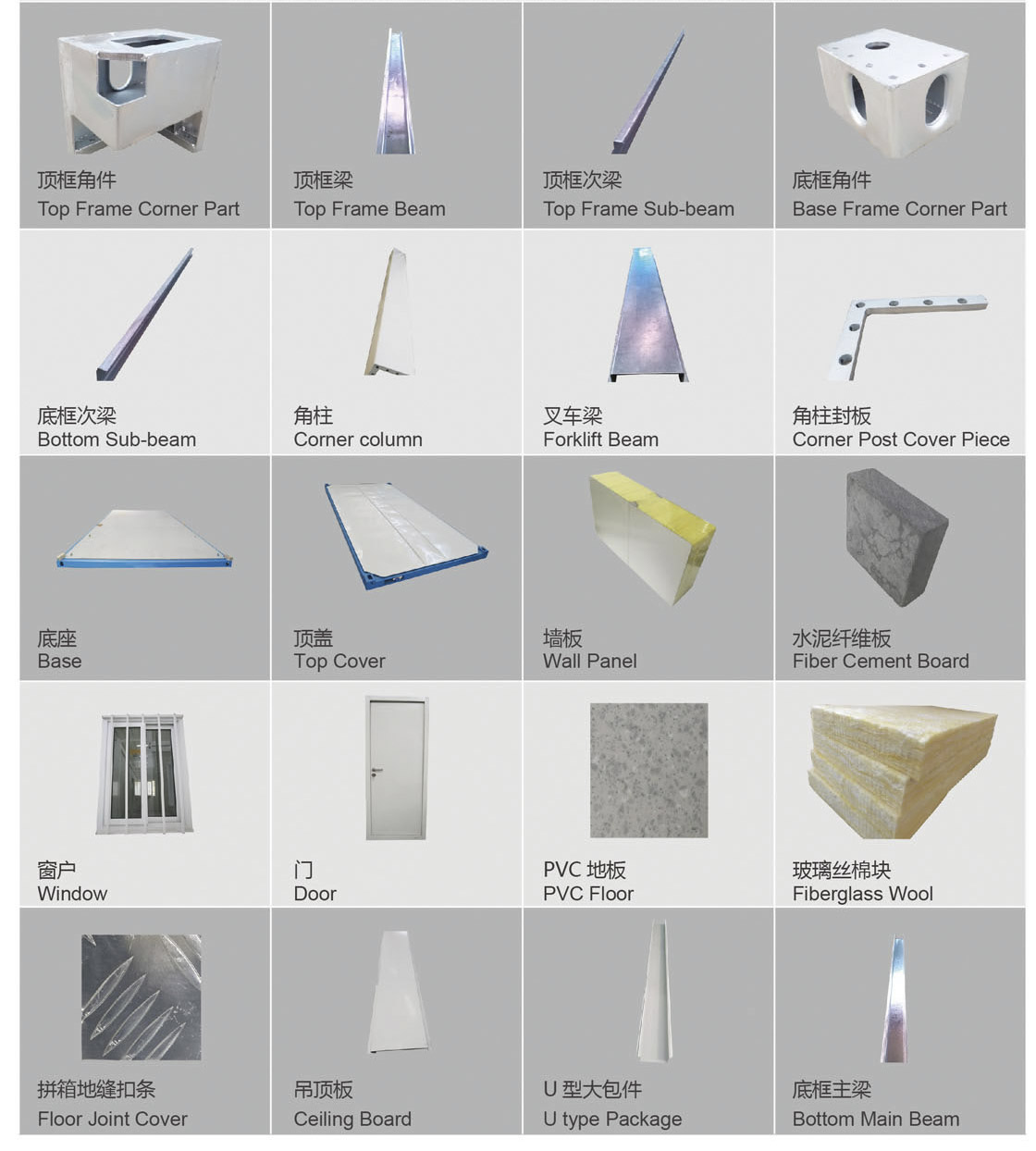| 屋面顶板 | 0.4mm彩钢单瓦,360度咬合,全封闭防水 | 0.4mm-0.6mm |